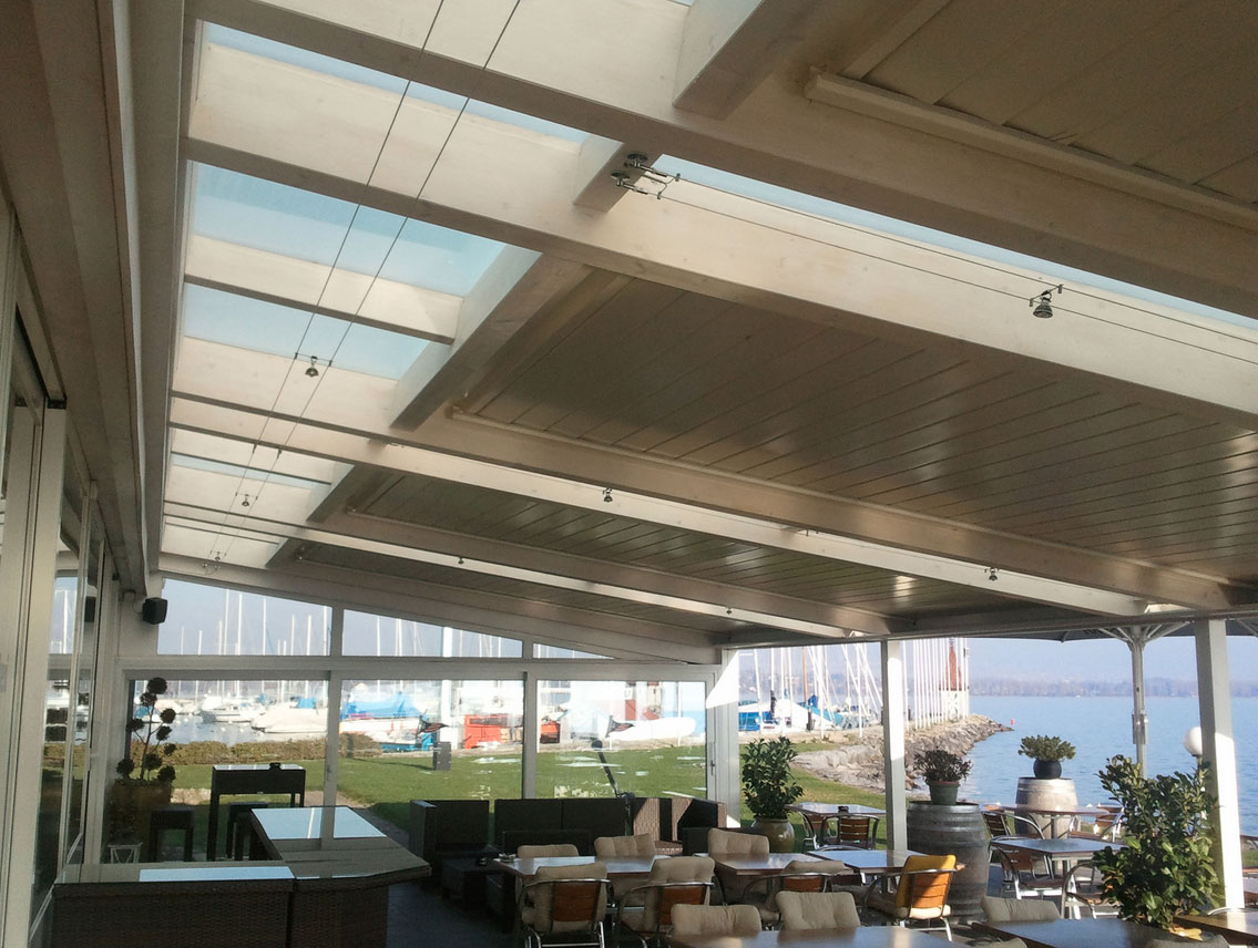 Statten Sie Ihr Überdachungssystem mit einer zusätzlichen Heizung aus, damit es noch gemütlicher wird.