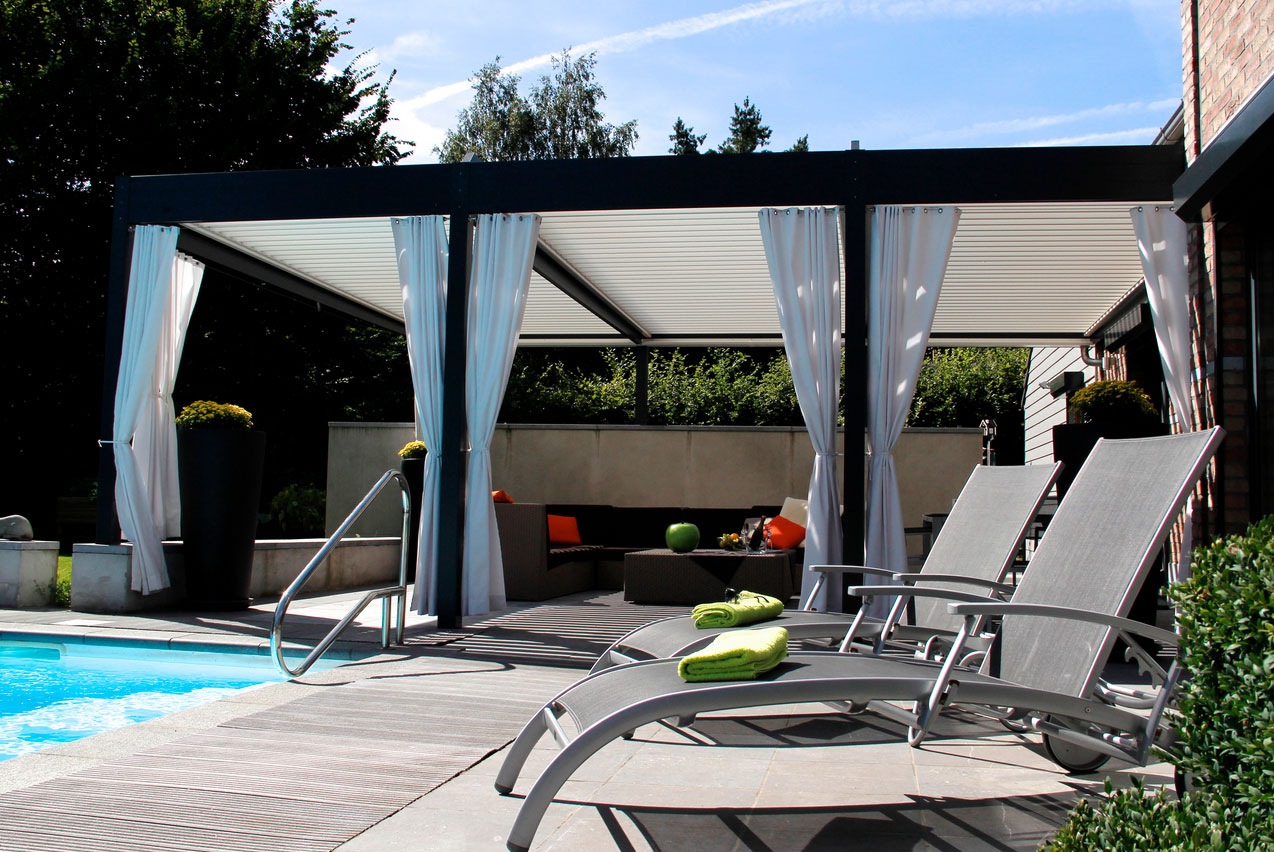 Durch den Anschluss an eine Wetterstation ist Ihr neuer Gartenauβenraum vor Wind und Wetter geschützt. Das Überdachungssystem kann sich automatisch den Wetterbedingungen anpassen.