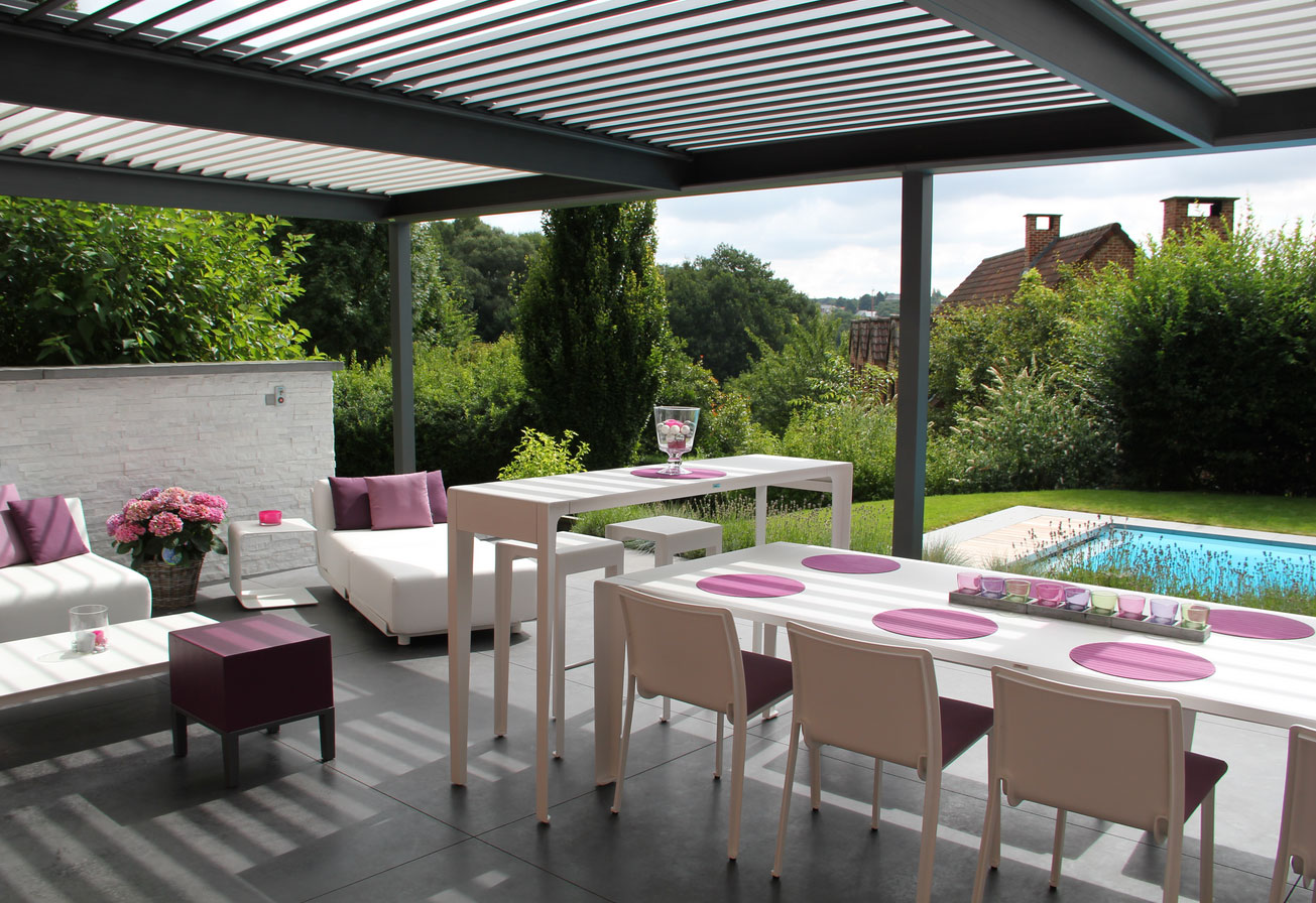 Durch den Anschluss an eine Wetterstation ist Ihr neuer Gartenauβenraum vor Wind und Wetter geschützt. Das Überdachungssystem kann sich automatisch den Wetterbedingungen anpassen.